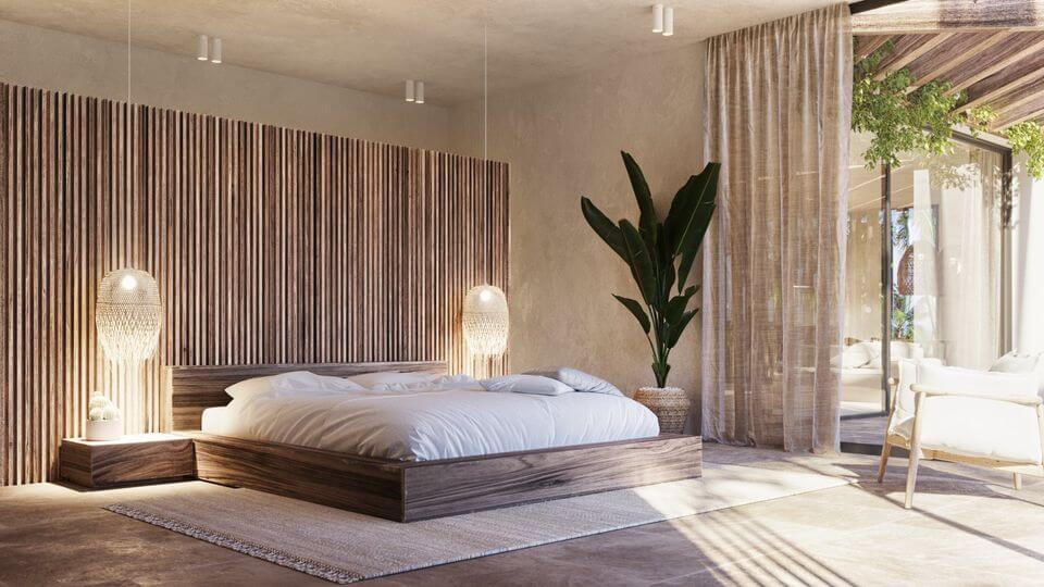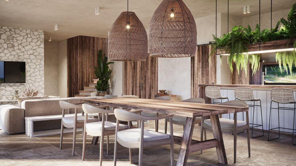 Accommodation of 65m², with separate double bedroom, spacious living room with integrated open plan kitchen, bathroom and with large garden and views to the pool.